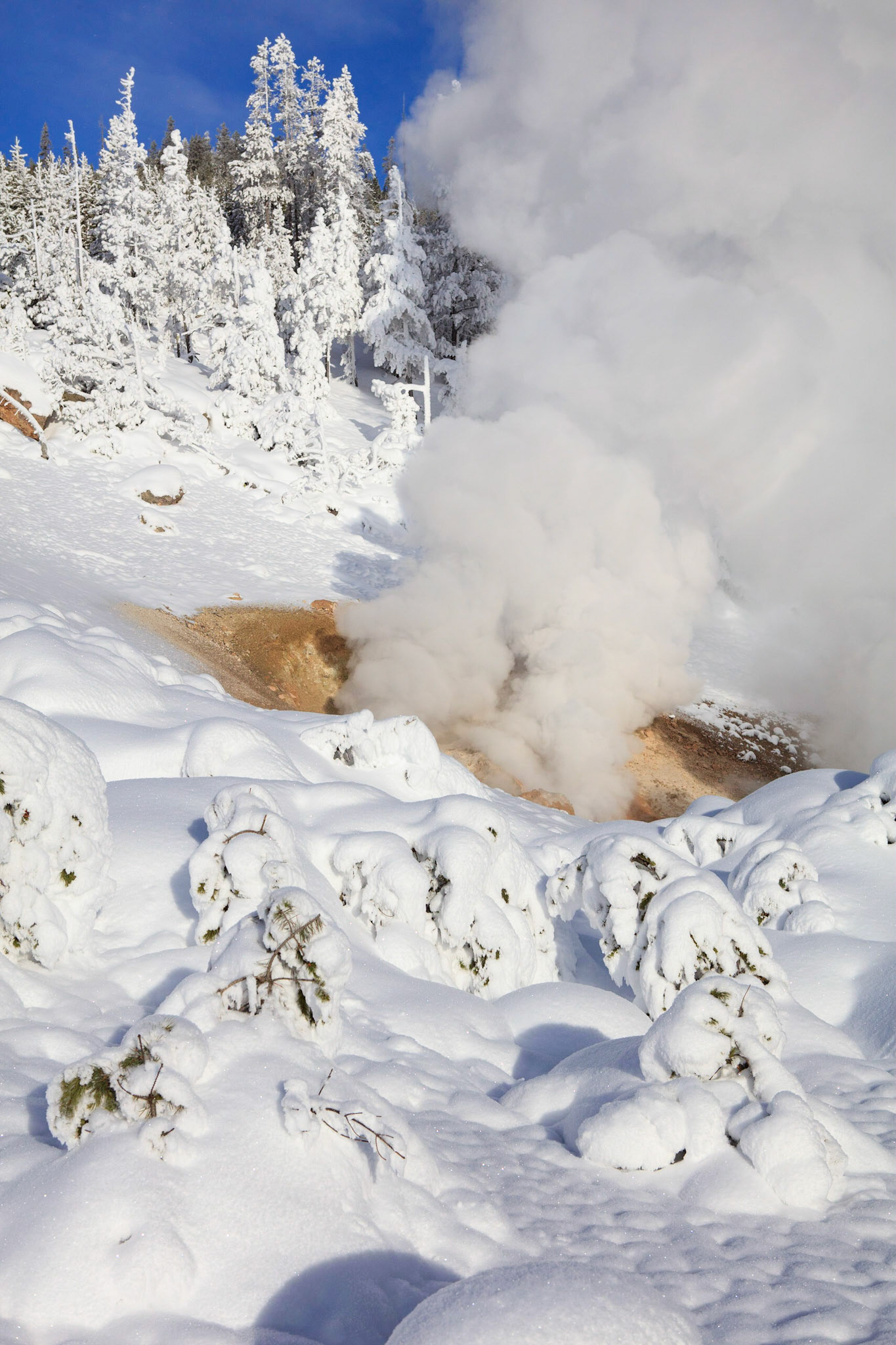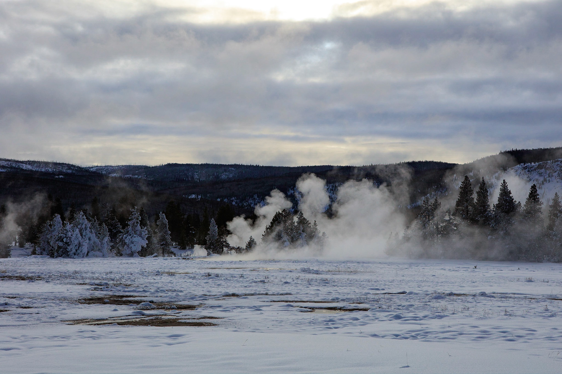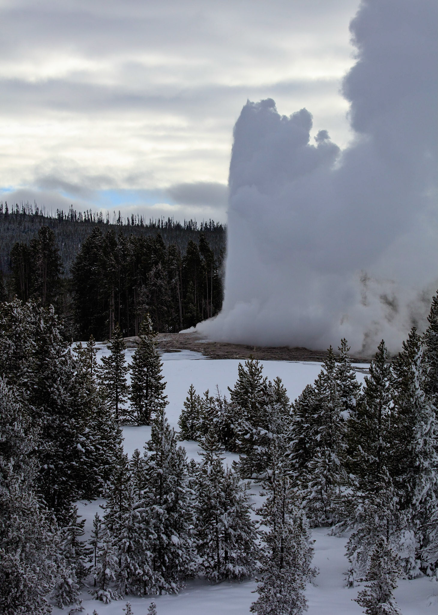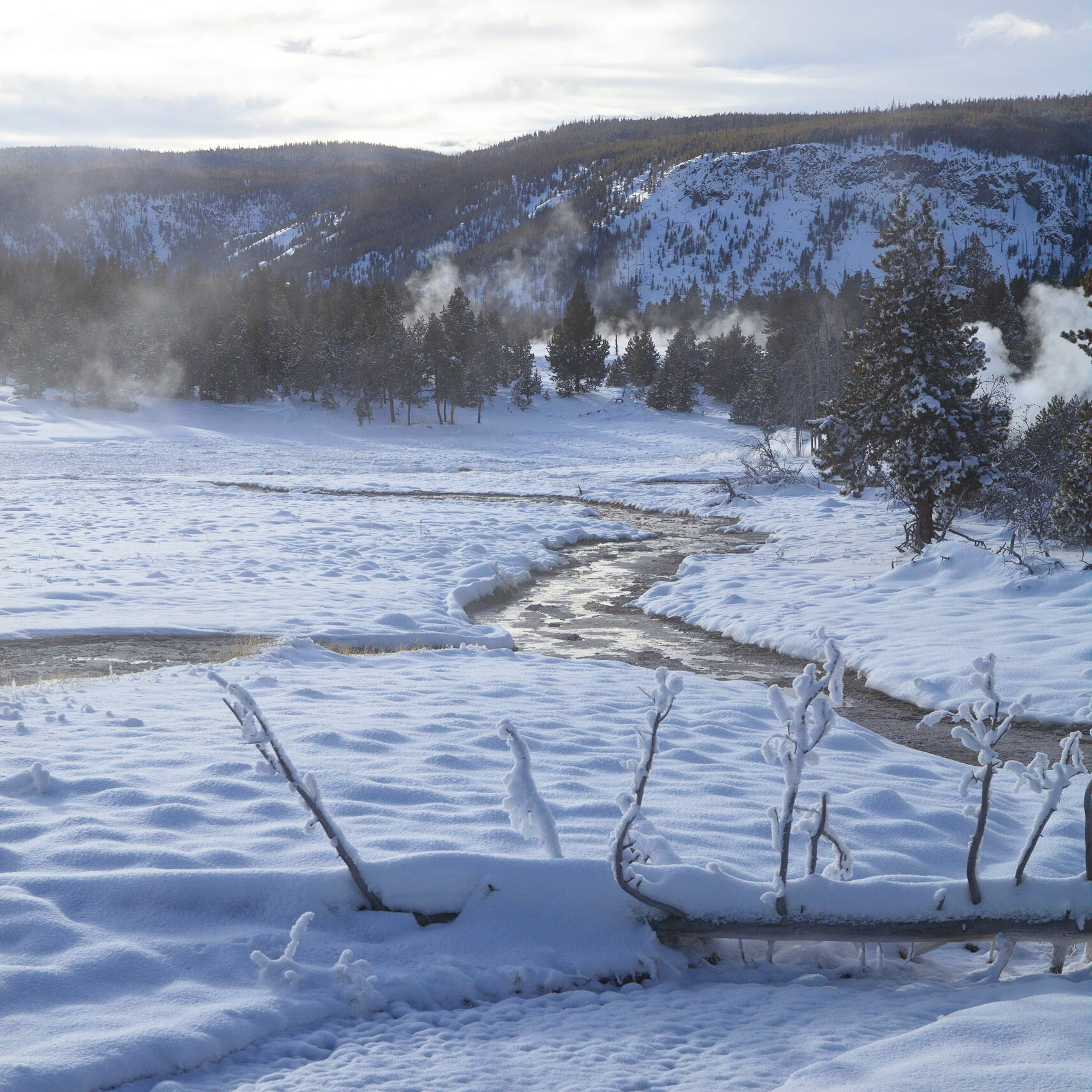 Winter was perfect for visiting Yellowstone. There's more steam from condensation in the cold air, the snow-covered landscape has a a lot of character, and so do frosted trees.