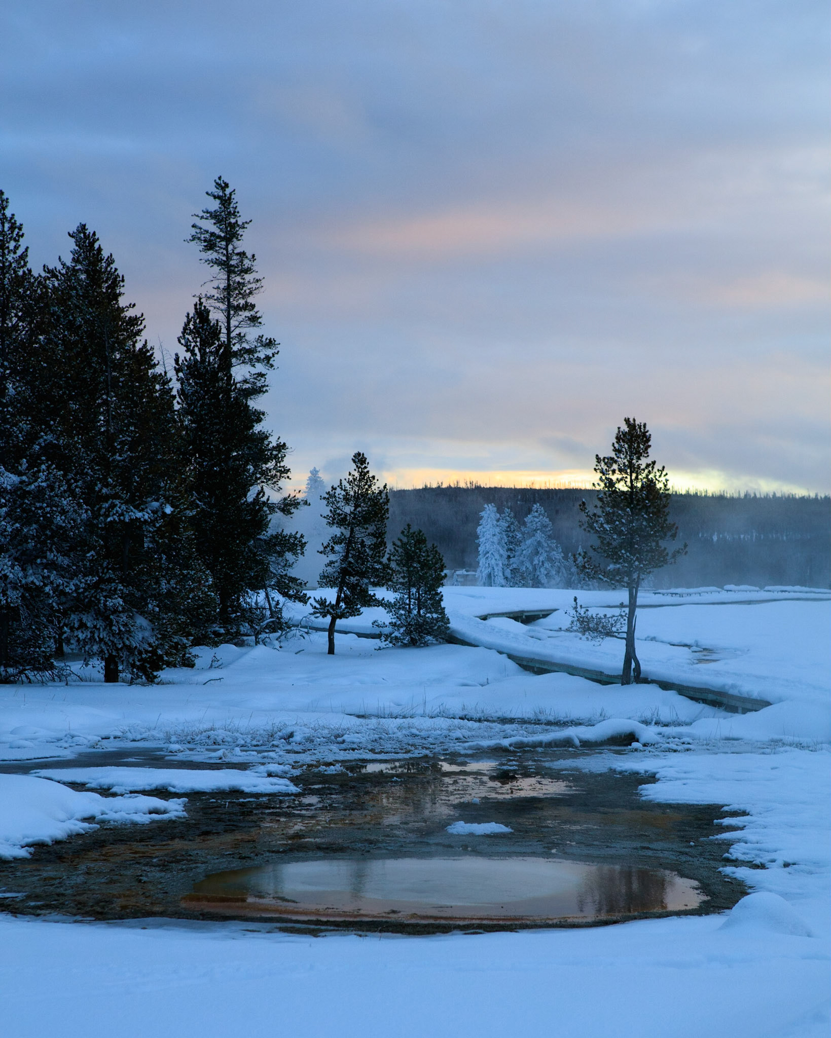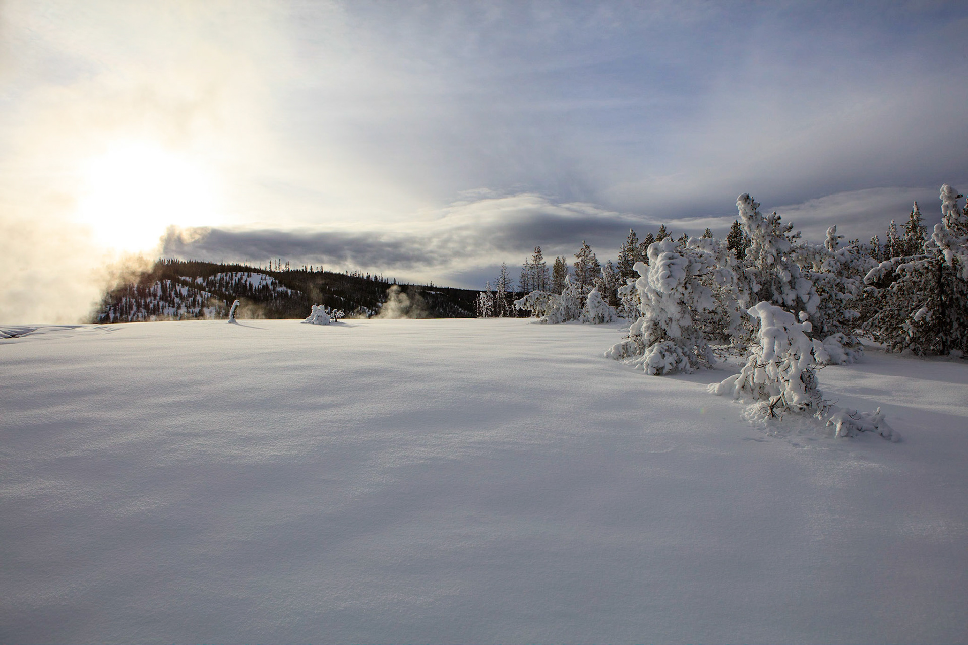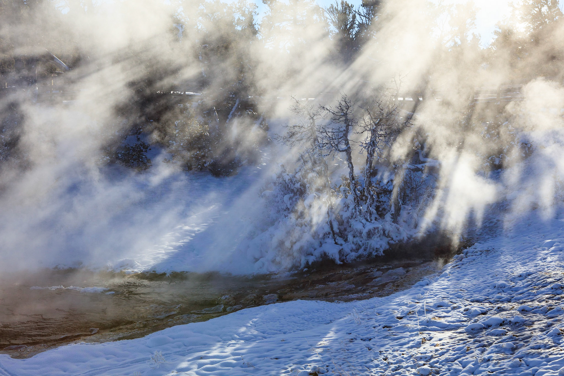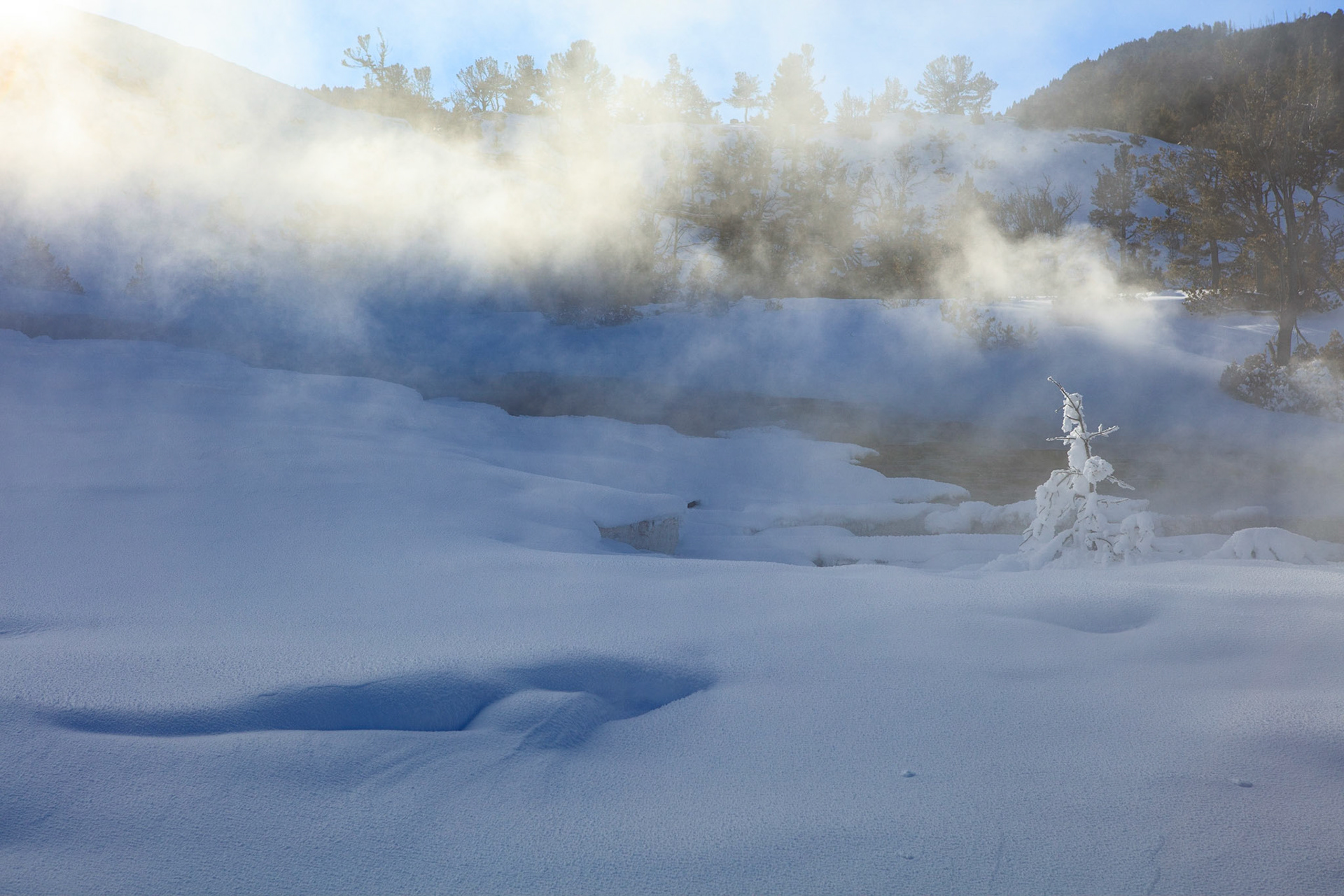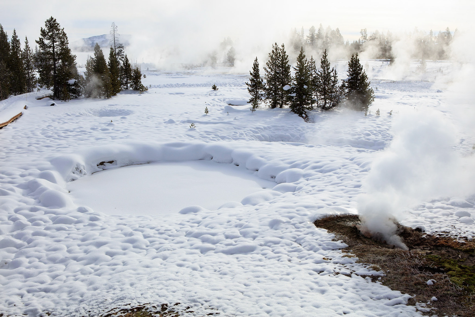 Winter was perfect for visiting Yellowstone. There's more steam from condensation in the cold air, the snow-covered landscape has a a lot of character, and so do frosted trees.