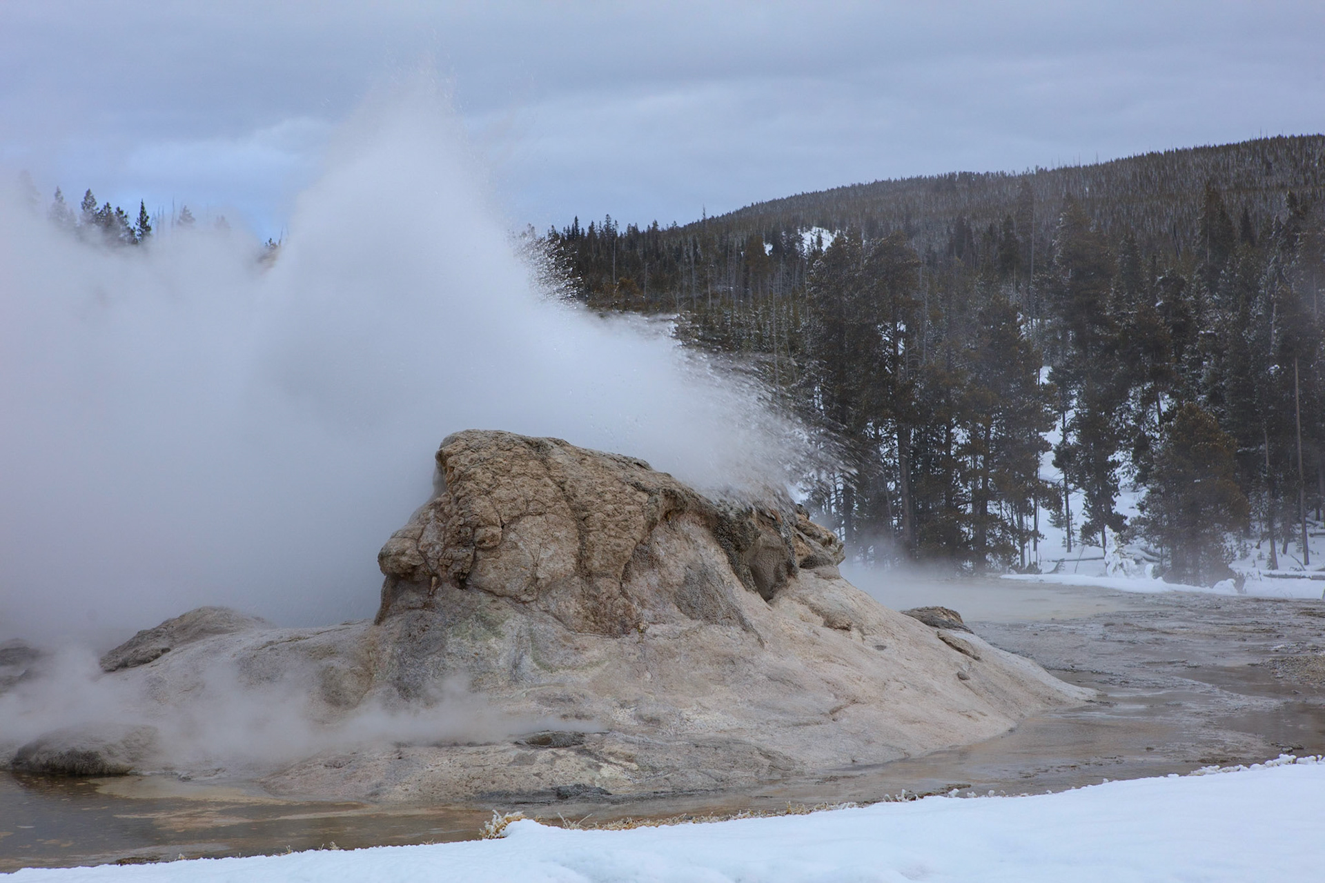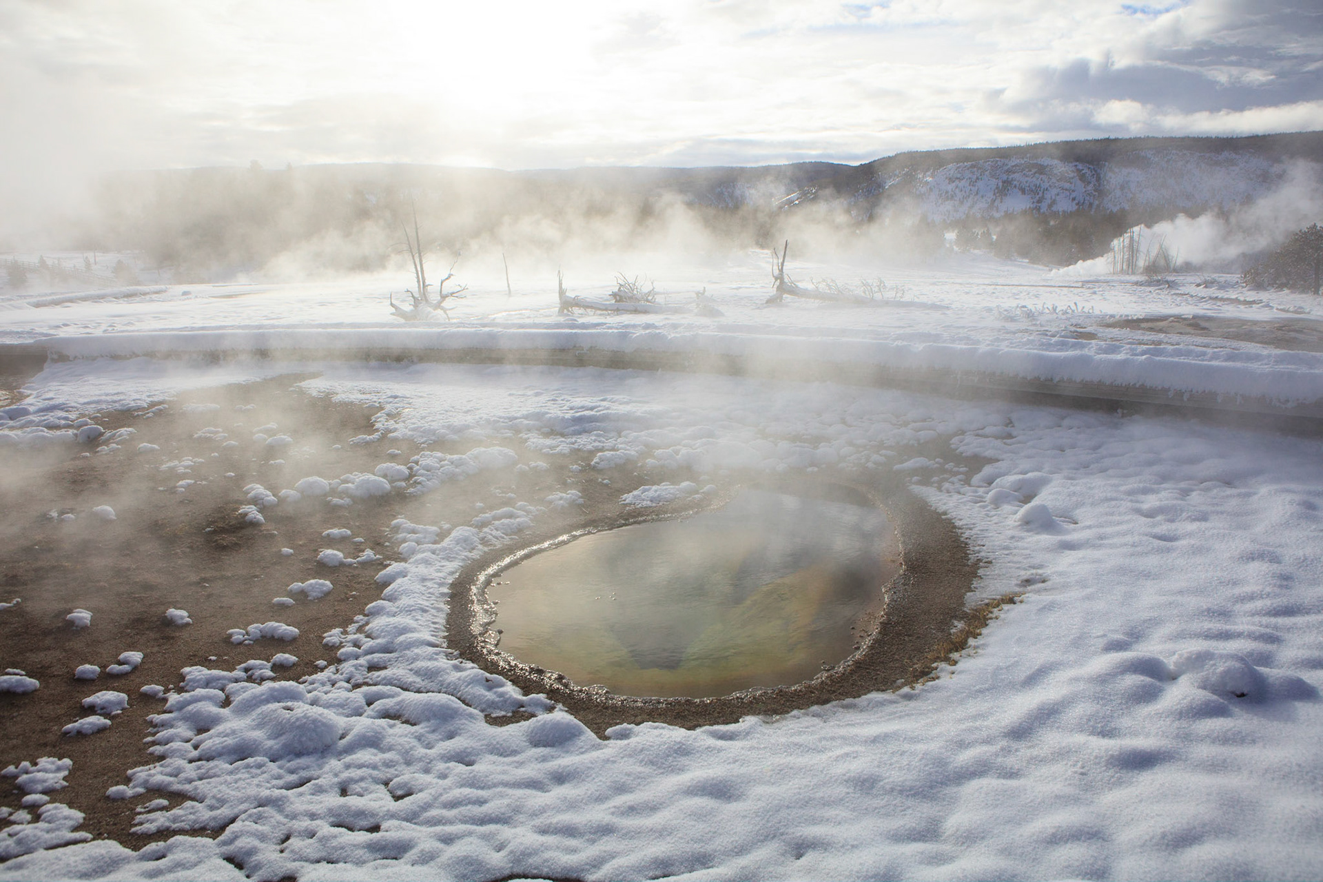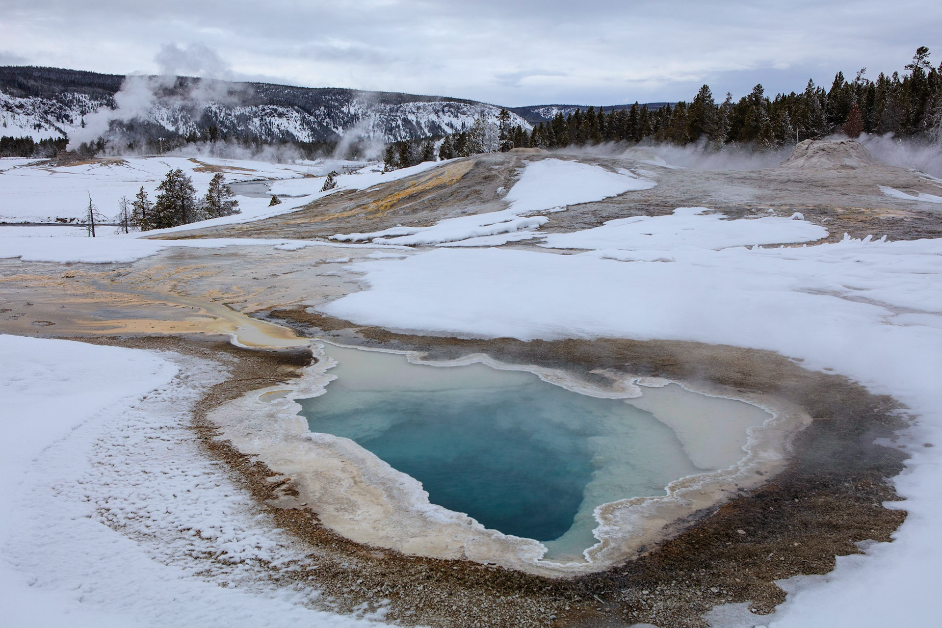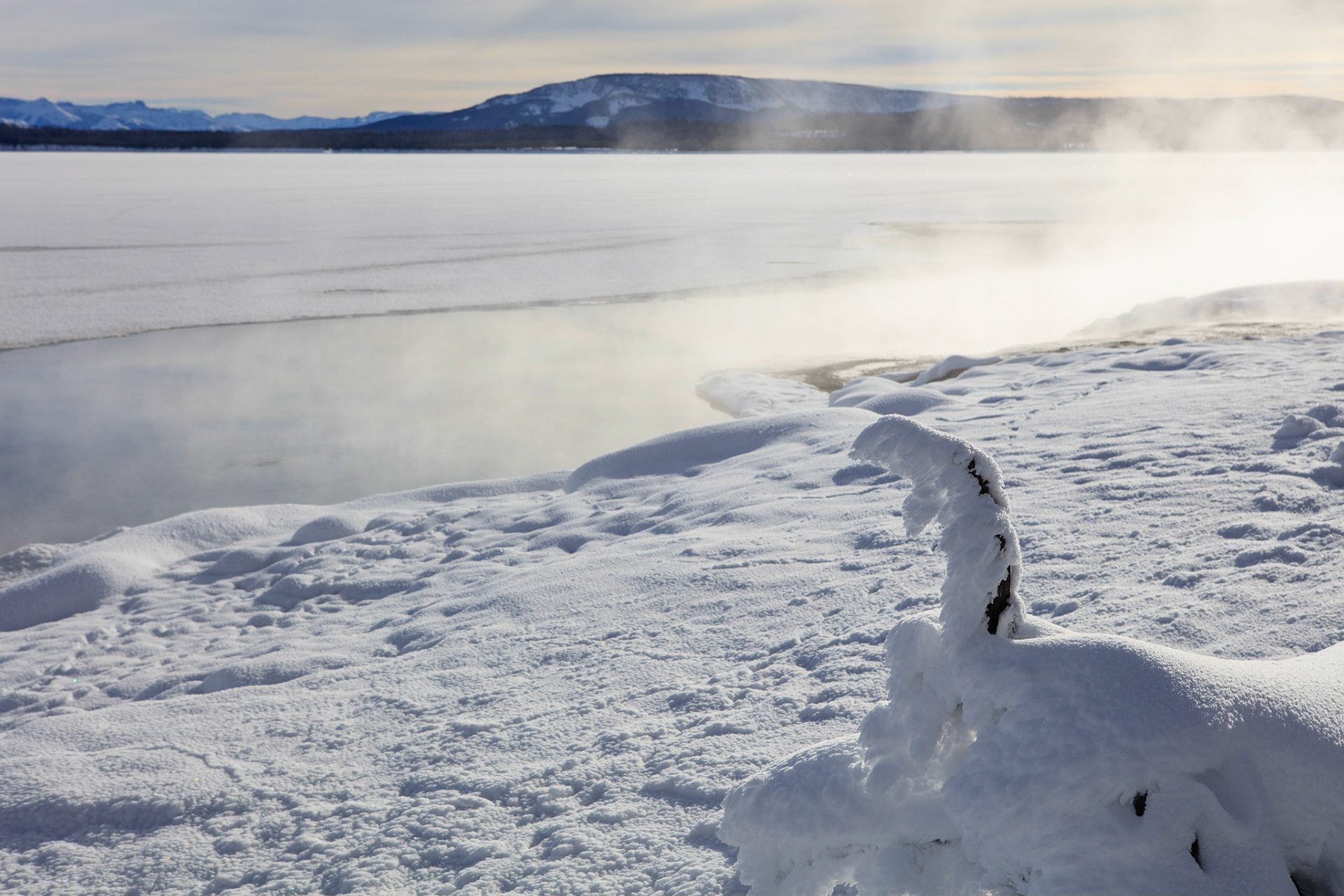 Winter was perfect for visiting Yellowstone. There's more steam from condensation in the cold air, the snow-covered landscape has a a lot of character, and so do frosted trees.