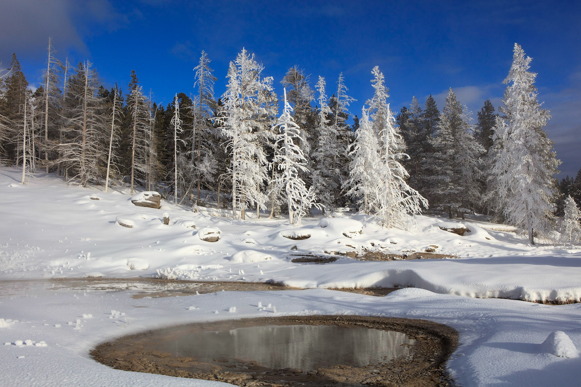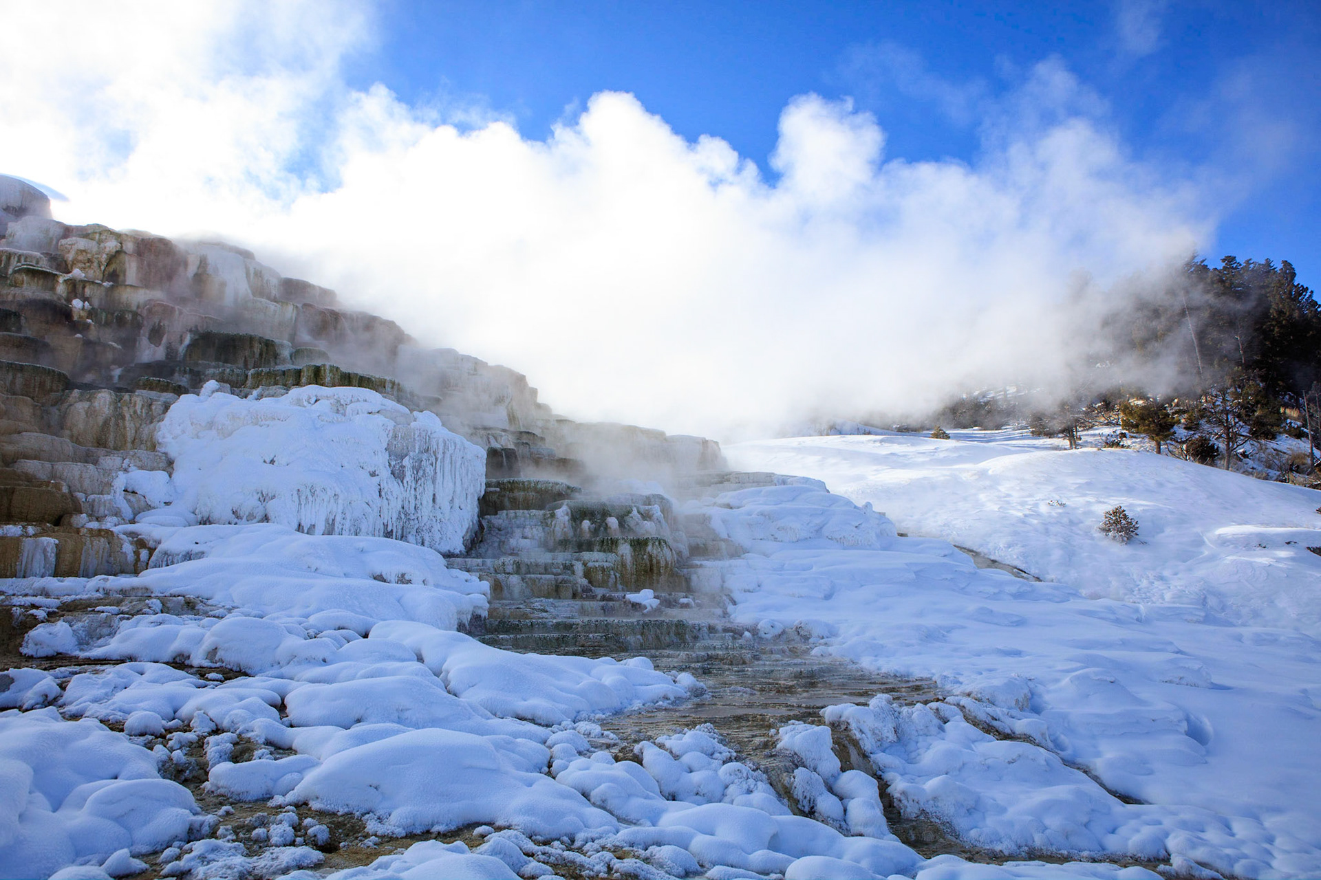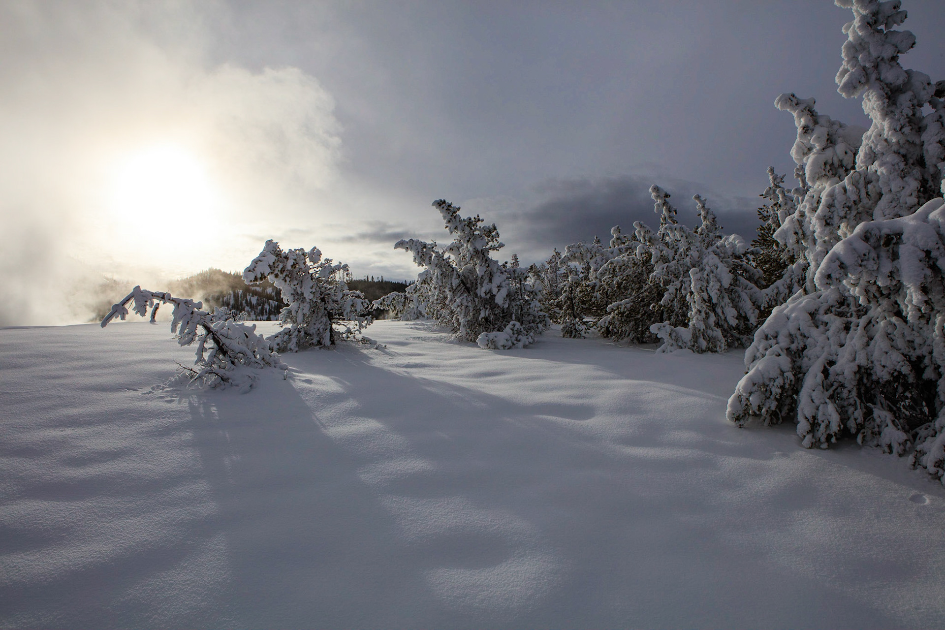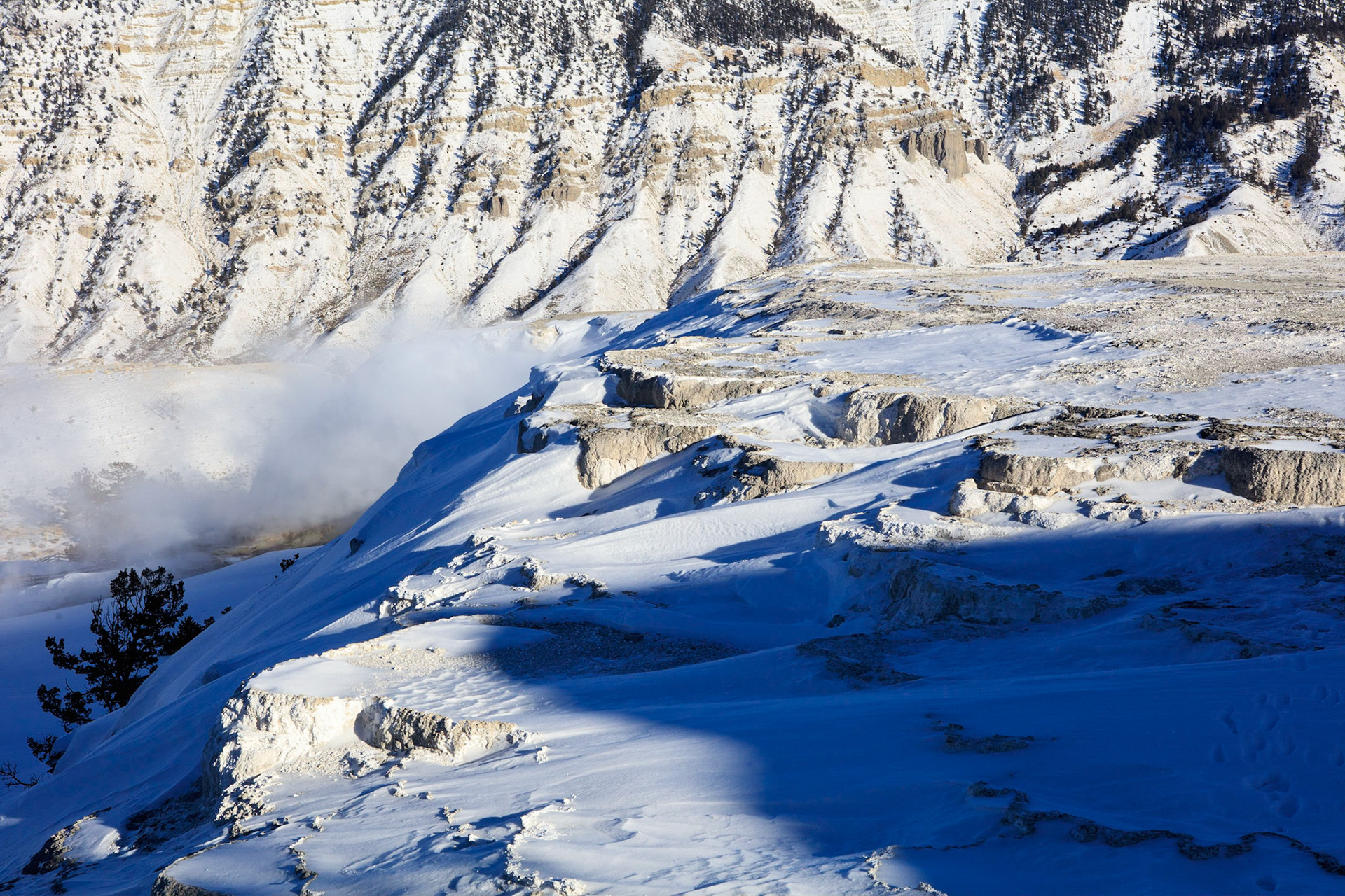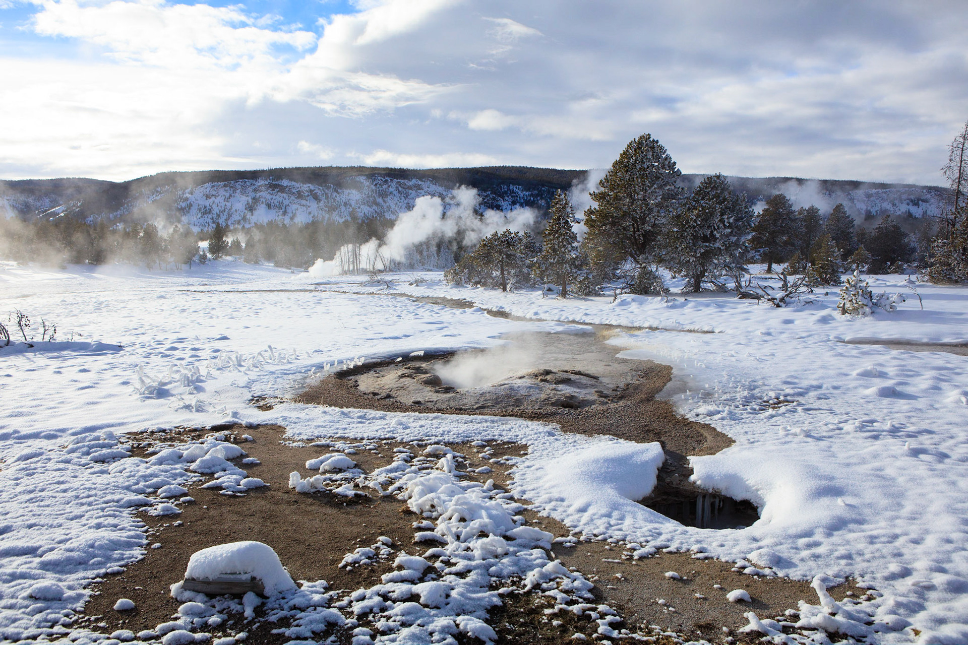 Winter was perfect for visiting Yellowstone. There's more steam from condensation in the cold air, the snow-covered landscape has a a lot of character, and so do frosted trees.